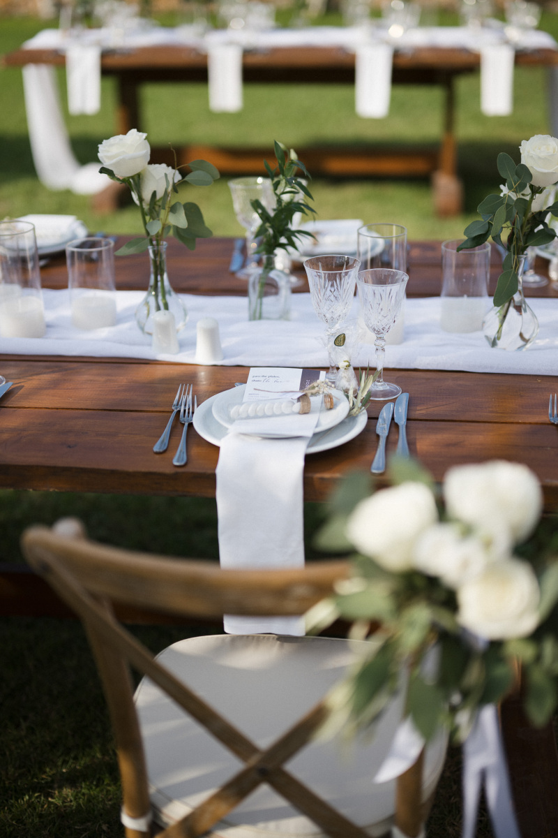 The ceremony was heartfelt and personal, conducted by a close friend of the couple. Surrounded by olive trees, stone walls, and the warm Cretan light, the couple exchanged vows that brought smiles and tears to everyone present. The atmosphere was filled with love, laughter, and the sound of applause as they sealed their union.
